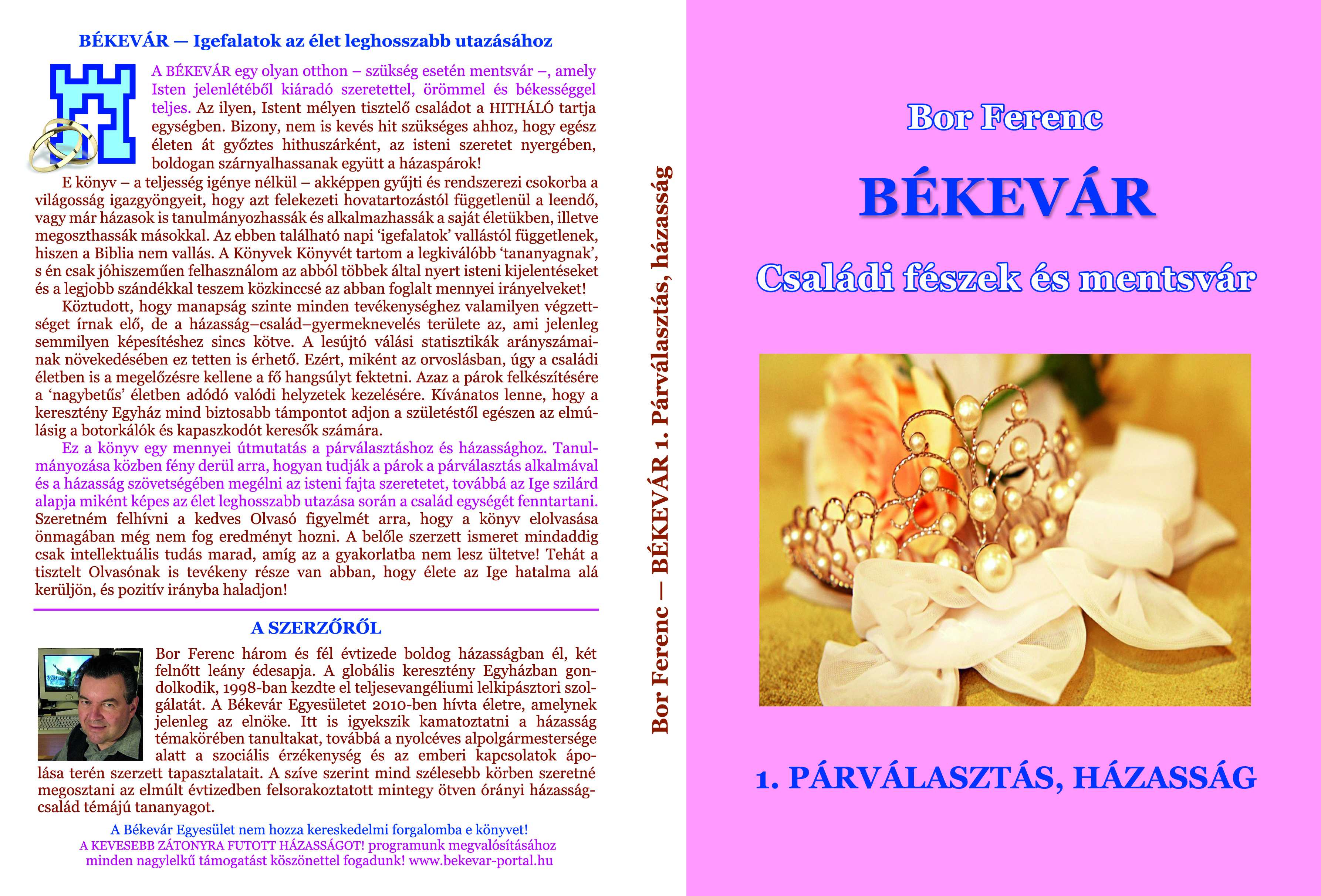 Megérkezett 2012-10-09 - Október 9-án megérkezett a könyvcsomag, az igénylők felé a szétküldés folyamatosan történik. Megjelent 2012. októberében a „BÉKEVÁR 1. Párválasztás, házasság” című könyv első kiadása.